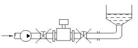 4.當(dāng)向下管道長(zhǎng)度超過(guò)5m時(shí),在傳感器后安裝一個(gè)虹吸管或一個(gè)放氣閥。以避免低壓而可能造成的對(duì)測(cè)量管襯里的破壞。保證滿(mǎn)管,減少含氣量。