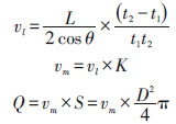 順向和逆向的傳播時(shí)間為t1 和t2 ,聲道線與管道壁面夾角為θ ,管道的橫截面積為S ,聲道線上的線平均流速vl 和體積流量Q 的表達(dá)式: